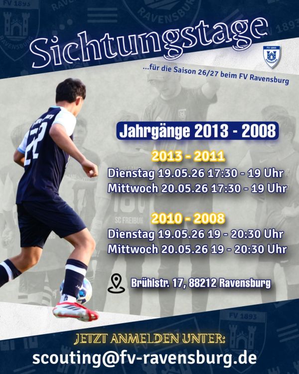 Dann melde dich jetzt für die Talentsichtung des FV Ravensburg an.