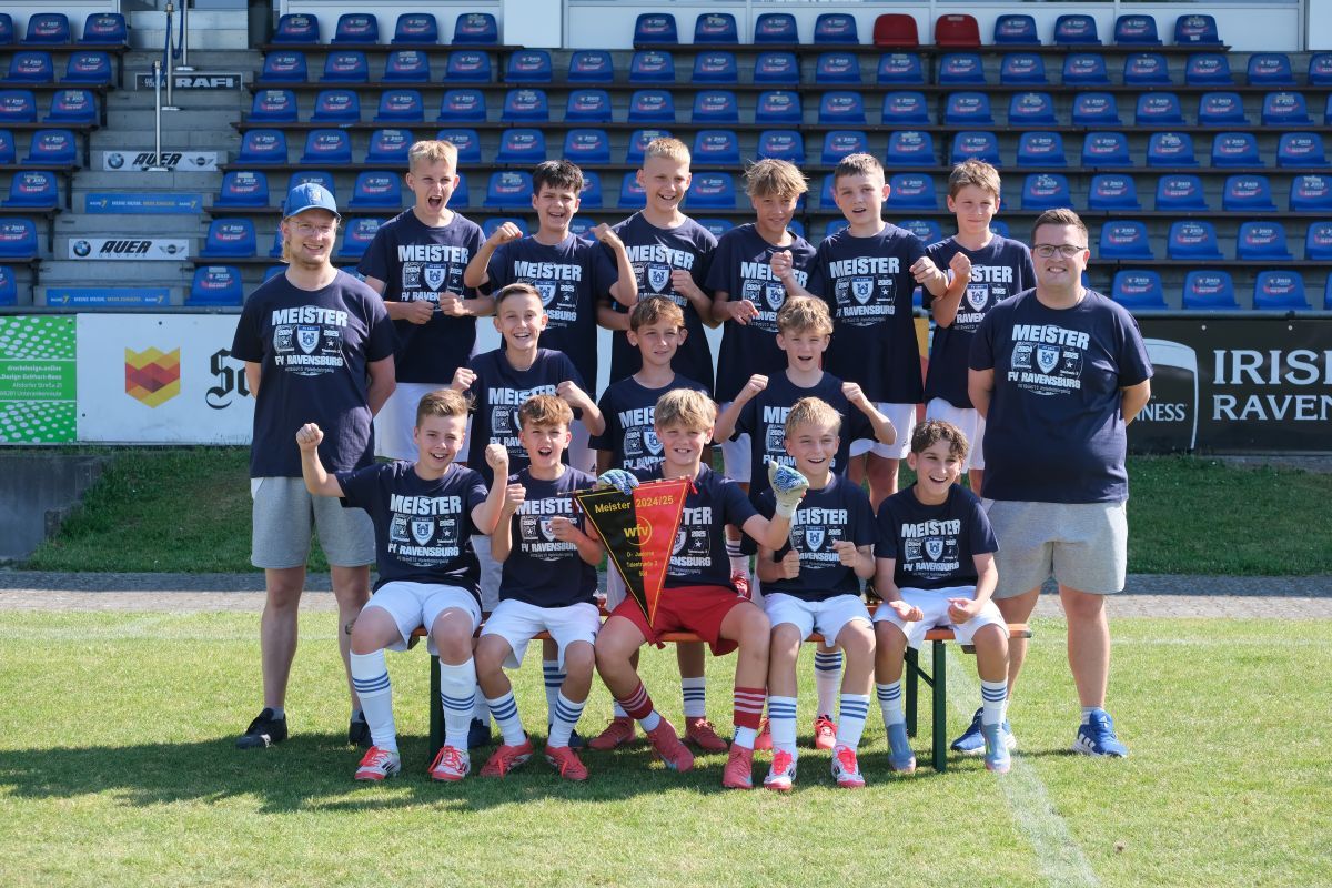 Am Freitag, 20. Juni, bekam die Ravensburger U12 unter dem Trainerteam Bruno Rudolphi und Daniel Nixdorf von Junioren-Staffelleiterin Iris Krelowetz den Meisterwimpel der Talentrunde 2 überreicht, der im Ravensburger Nachwuchsleistungszentrum sicher einen würdigen Platz finden wird. Diese Saison hat bewiesen, dass mit Engagement, Teamgeist und Leidenschaft große Erfolge möglich sind. Die U12 des FV Ravensburg kann auf eine beeindruckende Saison zurückblicken, denn sie hat sich sowohl im Herbst regional als auch in der Talentrunde überregional – sogar als jüngerer Jahrgang – gegen die stärksten U13-Teams der Region durchgesetzt. Ein klarer Beweis für die hervorragende Nachwuchsarbeit und die Zukunft des Jugendfußballs in Ravensburg.