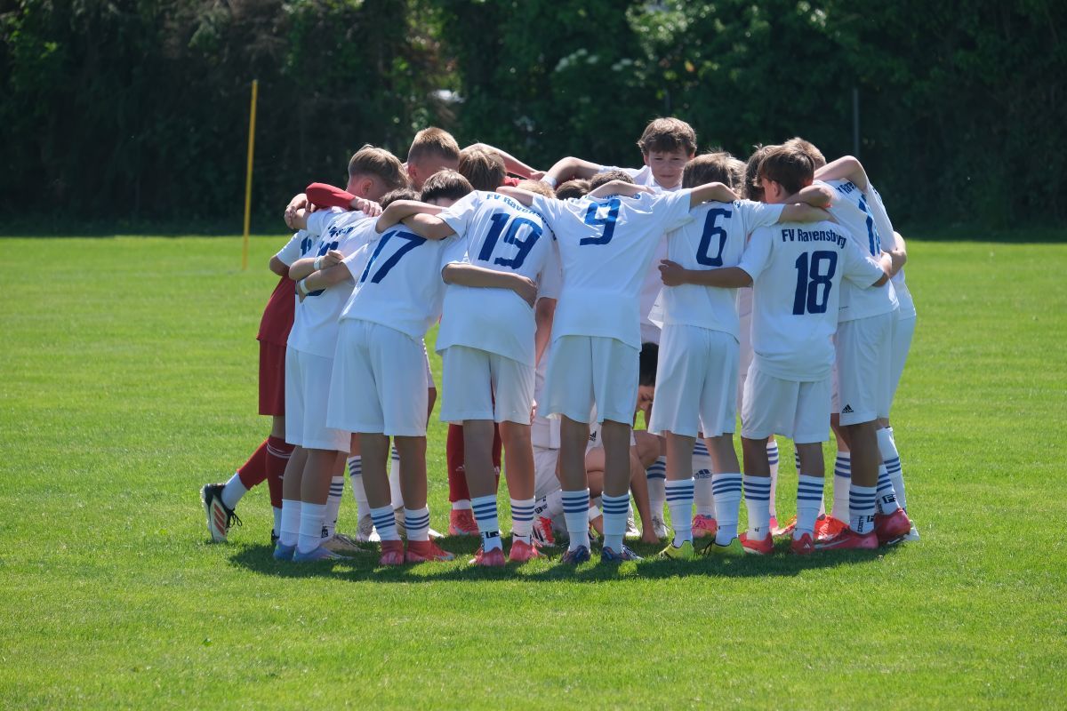 Am 16. März startete für die U12 schließlich die Meisterschaft in der Talentrunde Staffel 2 Süd. Was sich erst im Nachhinein herausstellte, war die Tatsache, dass bereits am ersten Spieltag das Spitzenspiel auf dem Programm stand. Die U12 des FV Ravensburg hatte die U13 der TSG Tübingen zu Gast im Wiesental. Mit einem verdienten und deutlichen 4:1 starteten die Ravensburger furios in das Abenteuer Talentrunde. Doch schon am zweiten Spieltag landete man wieder auf dem Boden der Tatsachen, denn in Dornstetten setzte es schließlich die erste Pflichtspielniederlage dieser Saison. Einem sehr überzeugenden 4:0-Auswärtssieg beim damaligen verlustpunktfreien Spitzenreiter aus Balingen folgte die zweite Saisonniederlage beim SV Zimmern. Zu diesem Zeitpunkt hatte sich die TSG Tübingen heimlich, still und leise mit drei Siegen an die Tabellenspitze geschossen. Nach einem Sieg gegen Laupheim folgte am 6. Spieltag dann in der Rückrunde der Talentrunde das Spitzenspiel in Tübingen, bei dem für die Ravensburger bei drei Punkten Rückstand in der Tabelle eine Niederlage das Ende aller Meisterschaftsträume bedeutet hätte. Völlig verdient eroberte die U12 mit einem 2:0-Erfolg die Tabellenführung und nahm die Punkte mit nach Ravensburg – somit war ein heißer Titelzweikampf eröffnet. Bereits einen Spieltag später folgte erneut ein Wechsel an der Tabellenspitze. Während Tübingen gewann, ließ Ravensburg zu Hause beim 2:2 gegen Dornstetten Punkte liegen. Nur einen Spieltag später gewann der FVR sein Heimspiel gegen Balingen, und Tübingen kam in Dornstetten nicht über ein Unentschieden hinaus. Durch den besseren direkten Vergleich war klar: Sollte der FV-Nachwuchs seine letzten beiden Spiele gewinnen, würde der Meister aus der Stadt der Türme kommen. Einem deutlichen 9:2-Heimsieg gegen die SGM Zimmern folgte ein knapper 2:1-Auswärtssieg in Laupheim. Da Tübingen am letzten Spieltag mit 2:0 in Zimmern unterlag, setzte sich die U12 des FV Ravensburg am Ende mit drei Punkten Vorsprung gegen die starke U13-Konkurrenz in der Talentrunde 2 durch – ein sensationeller Meilenstein in der Ravensburger Jugendfußball-Geschichte.