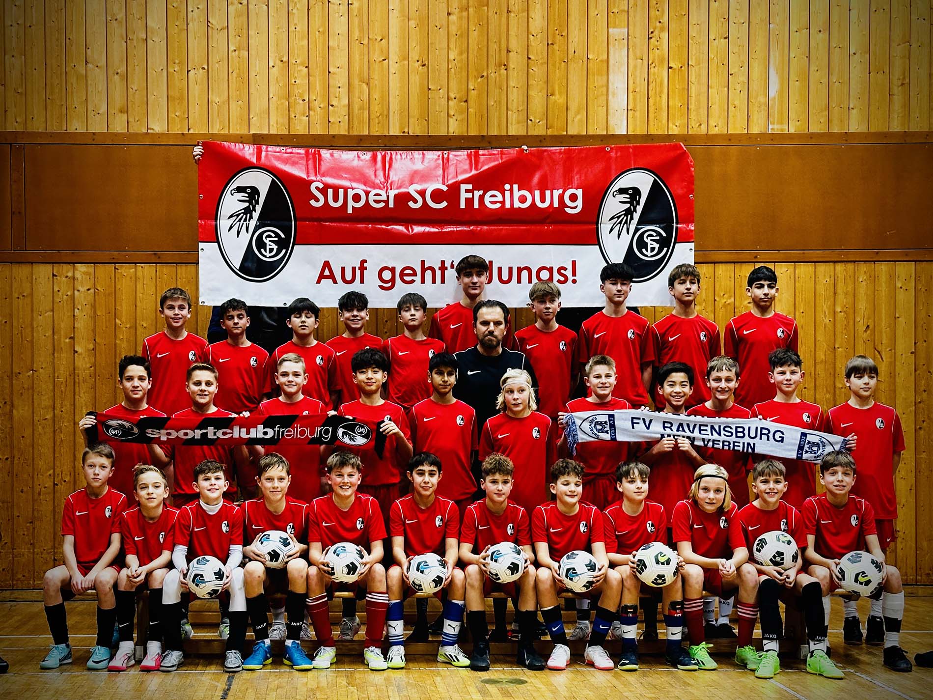 Hol den "Straßenfussball in die Halle" mit "Prinzip der kurzen Wege" plus "Der Ball ist mein Freund", sind die Mottos der SC Freiburg Fördergruppe in Zusammenarbeit mit dem FV Ravensburg.